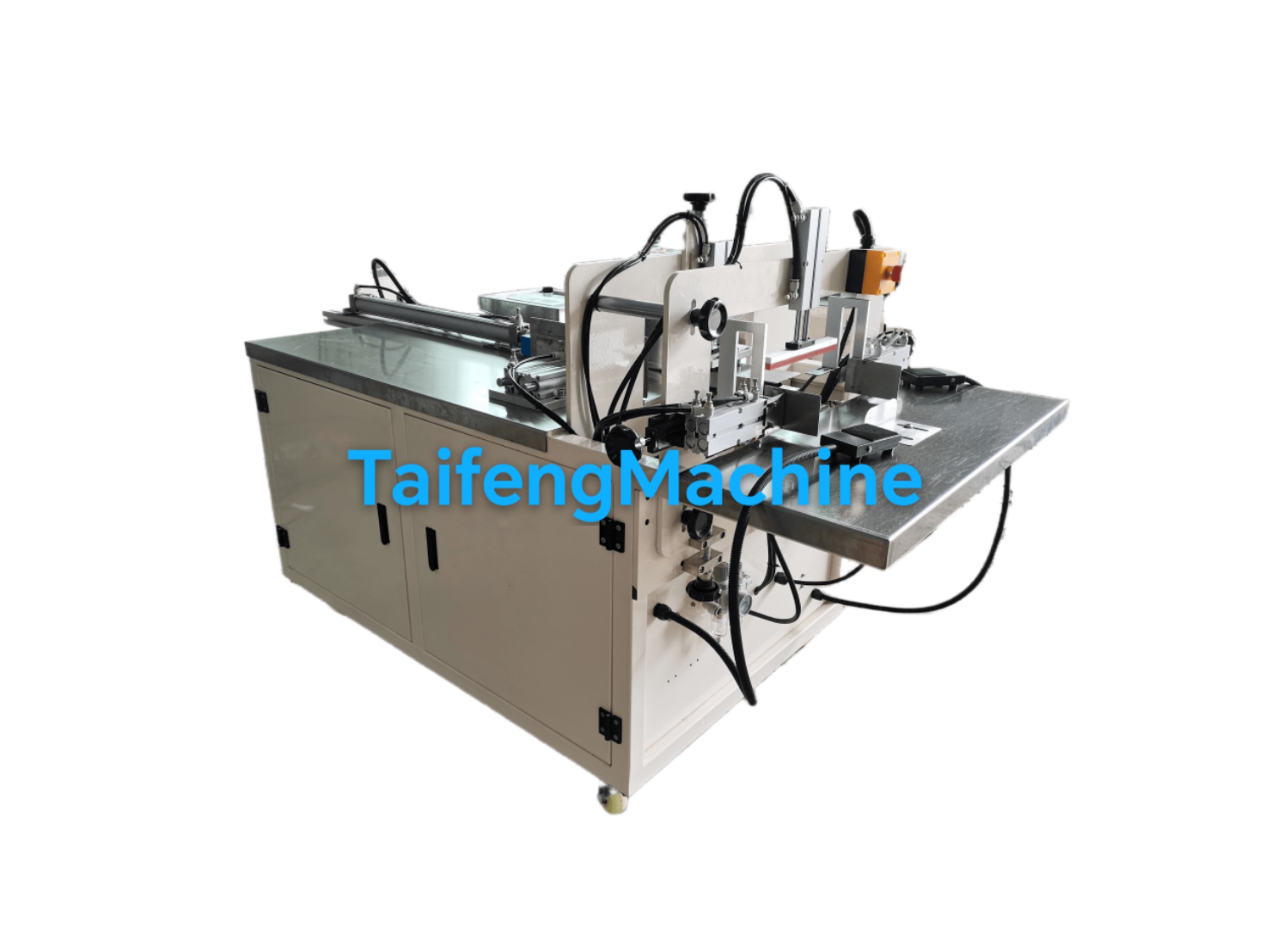 1.主要用於(yú)衛生棉的半自動(dòng)包裝機,片料經輸送(sòng)槽(cáo)輸送,壓實後人工套袋後(hòu)的自動裝袋封口封切吹廢料。