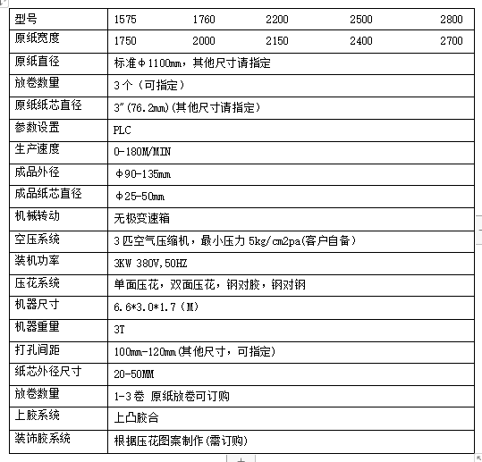 9.根據客戶的要求可做雙(shuāng)壓花輥,可配套上膠複合(hé)裝(zhuāng)置生產廚(chú)房紙,可(kě)配(pèi)套1-3色彩印設備。