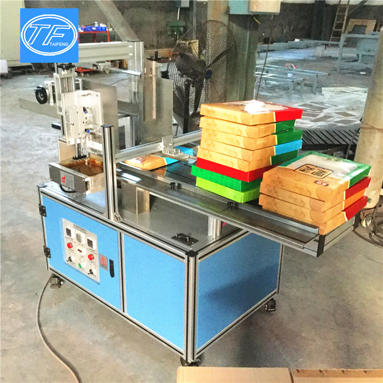 2.人工裝好物料放至封口機,人工推盒,機器自動上膠、封口,大小規格可調節;