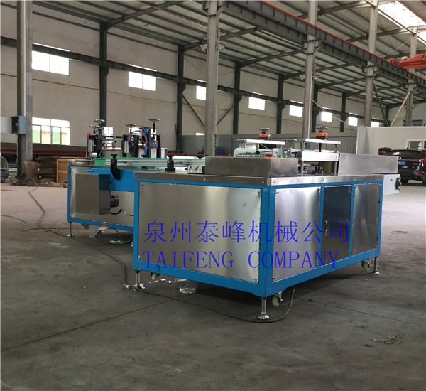 分切係統:由鋸帶、帶輪、工作板組成,工作板上有產品大小調(diào)整裝置,使產品達到可調目的。